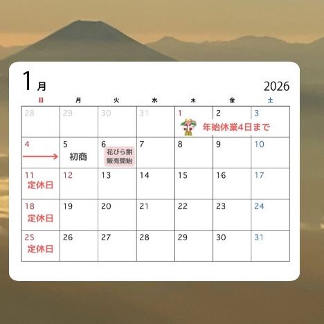 年始は、1月5日(月)から初商い。6日㈫より花びら餅を販売いたします。