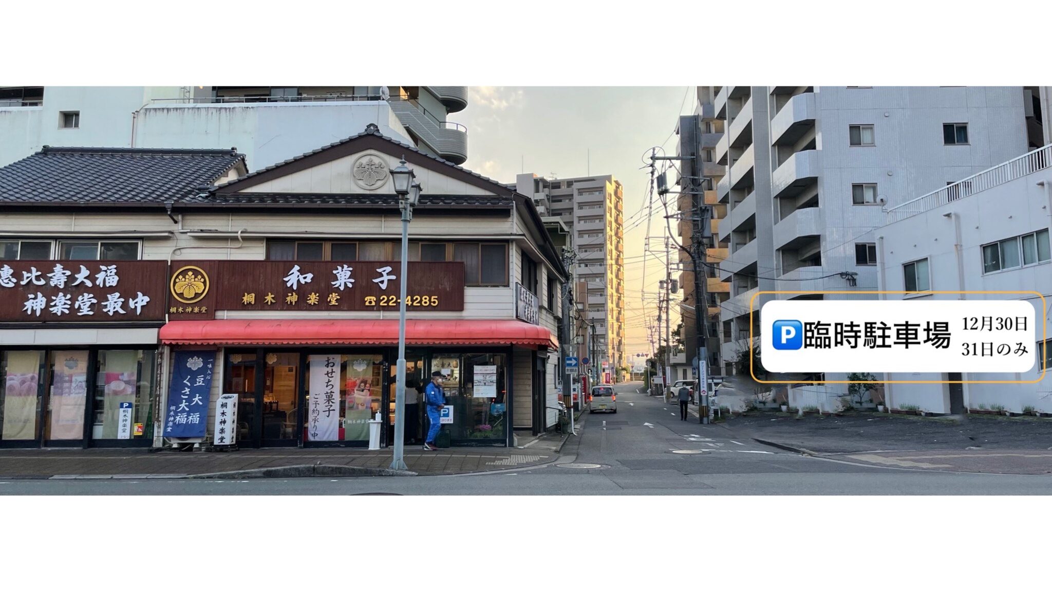 引き渡しに伴い、12月30日、31日は、混雑することが予想されますので、道路を挟んで横の光琳会様駐車場をお借りしました。臨時駐車場としてお使いください。