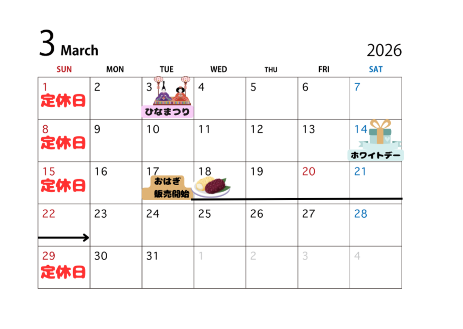 3月の営業案内